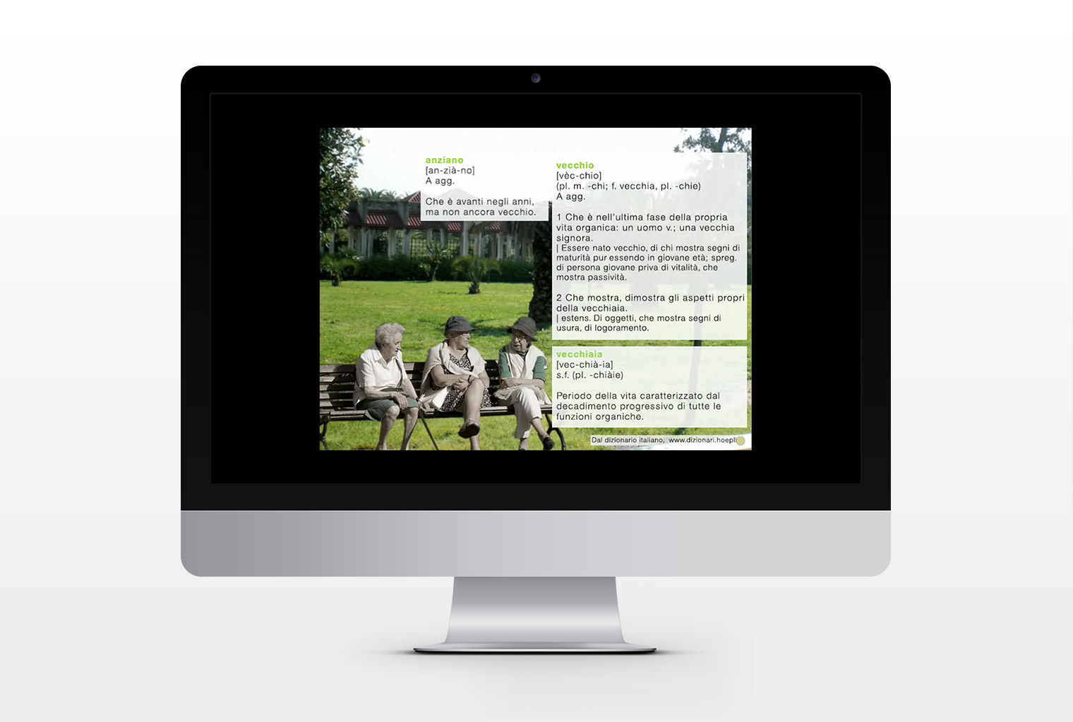 La tesi è costituita da una parte di ricerca, dalla produzione di due elaborati, uno cartaceo e uno multimediale, per presentare l'esito dello studio e da uno spot pubblicitario, da me ideato, scritto e realizzato. Innanzitutto, ho analizzato film, telefilm e spot pubblicitari in cui sono presenti degli anziani, individuando gli stereotipi con i quali vengono libri sull'argomento e raccolto tutto il materiale in un volume stampato. Quindi ho sintetizzato la ricerca in una presentazione multimediale, in cui si mescolano foto, video, testi e animazioni. Infine ho ideato, girato e montato uno spot di 30’’, che mostra l’anziano con un linguggio ironico, seguendo quelle regole che ho delineato a conclusione della mia tesi.